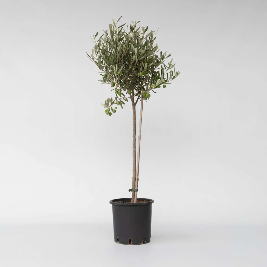 Декоративне середземноморське дерево з вузьким сріблясто-зеленим листям, яке зберігається цілий рік. Має компактну, густу крону та приємну фактуру кори. Навесні утворює дрібні білі запашні квітки, які можуть давати плоди — оливки — за сприятливих умов вирощування. У контейнерній або штамбовій формі олива чудово підходить для патіо, терас і зимових садів, додаючи середземноморського шарму будь-якому простору.